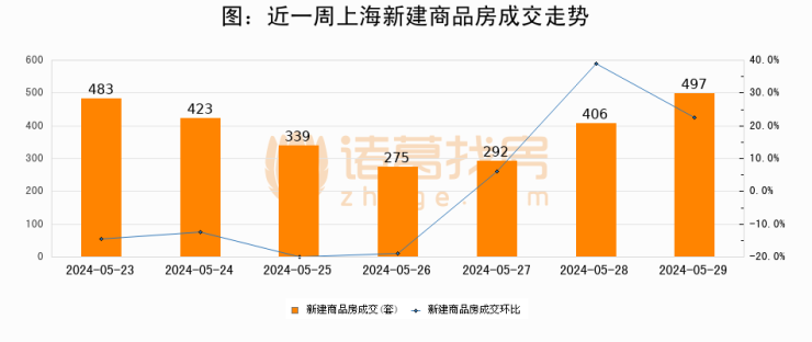 【上海成交日报】05月29日新房成交497套;涨价房源385套