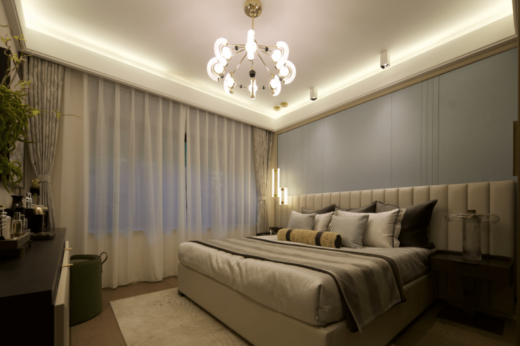 建筑面积约128㎡ 四房户型,空间尺度更为宽阔,主卧自带盥洗室为套房设计,一站式起居,私密性和舒适度兼备。