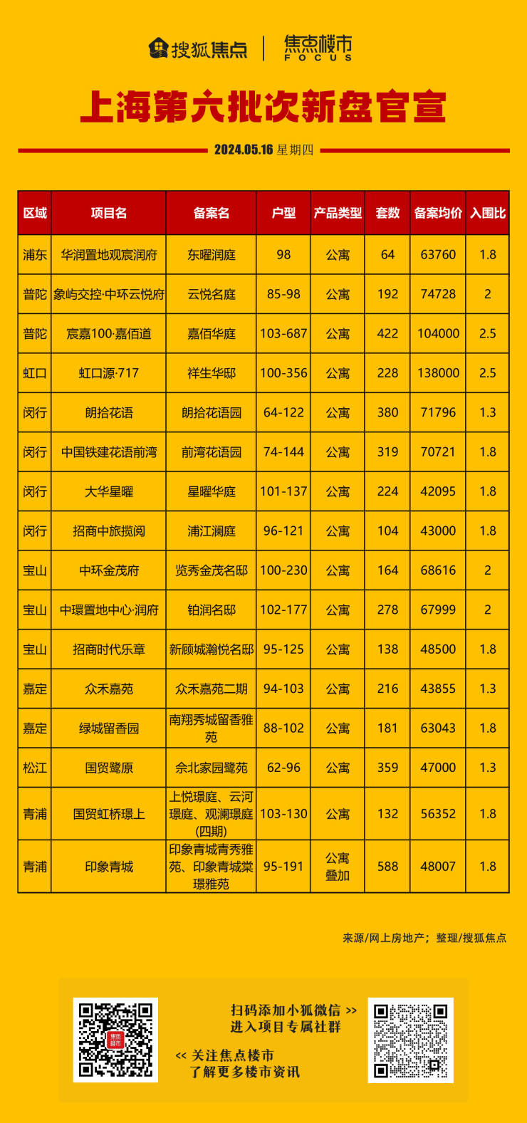 上海第六批次新房名单官宣,16盘3989套房源待入市