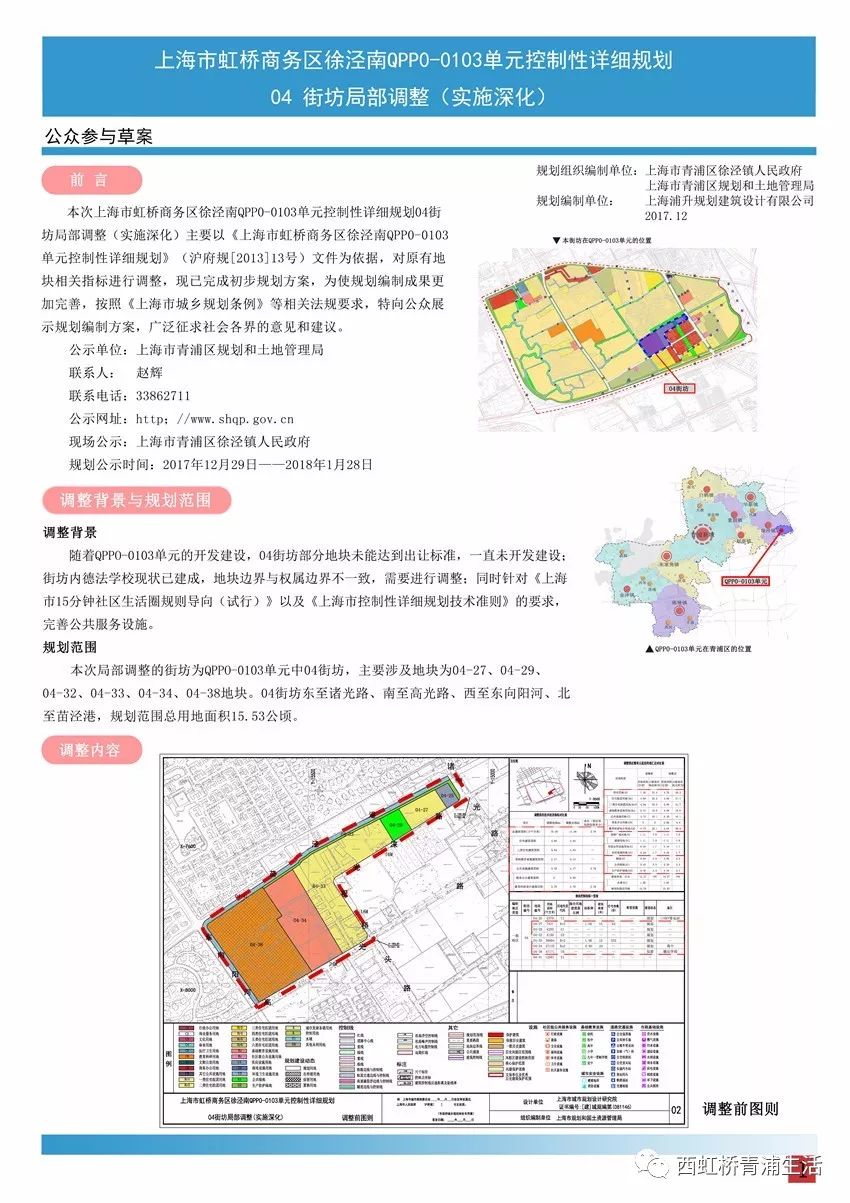 本次上海虹桥商务区徐泾南QPPO-0103单元控制性详细规划04局部调整(实则深化)主要以《上海市虹桥商务区徐泾南QPPO-0103单元控制性详细规划》文件做依据,对原有地块相关指标进行调整。