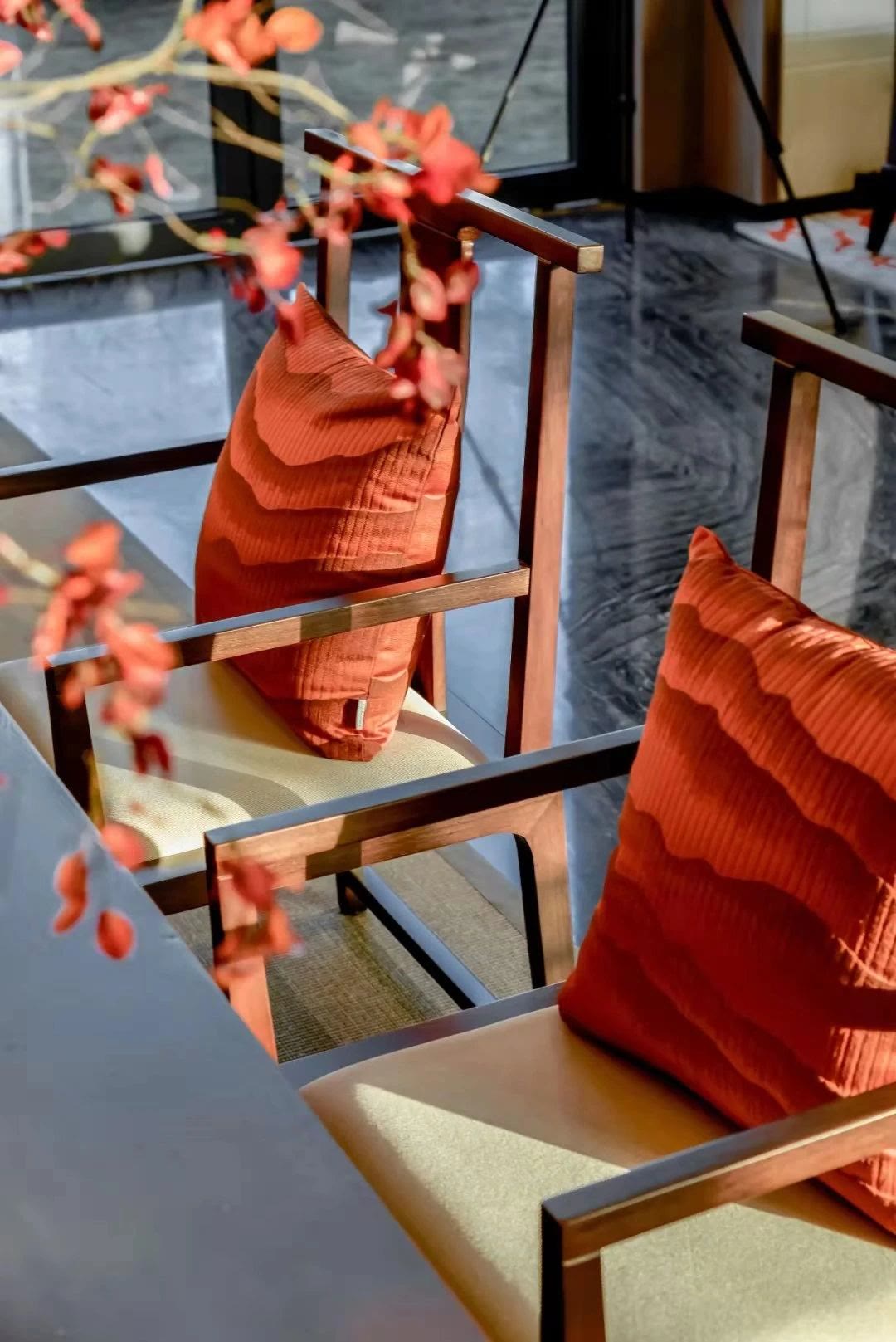 整体空间以沉稳的木色和米灰为主色调,大面积的木色和米灰衬托整个空间的质朴和纯粹,一丝温暖的橙黄与红色提亮空间视觉。东方雅韵与现代艺术的消融,空间之间的弥合、对话、诉说新与旧在一笔一墨之中。怡情于物囿,方显空间之清美,以至高的趣味规范空间之情味,在所有的空间建筑之中,去揣度空间里应有的东方文化尺度。