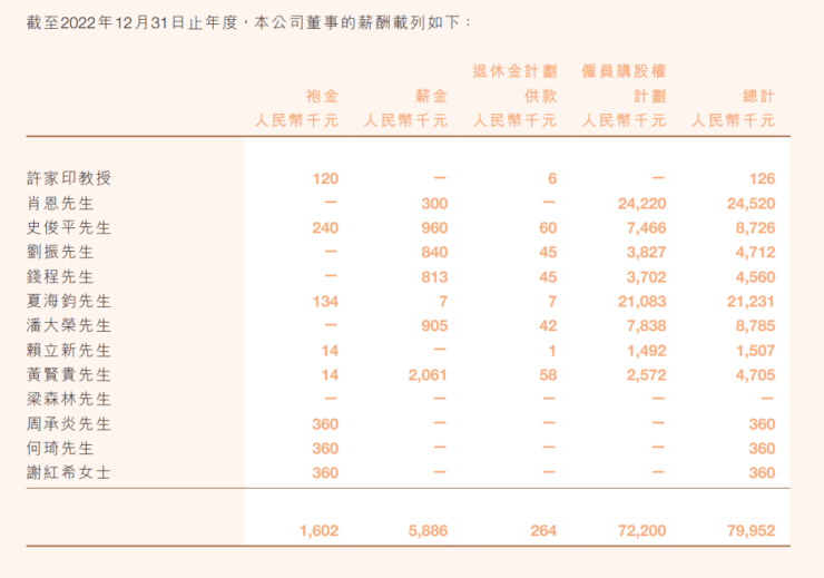 值得注意的是,上述薪酬中雇员购股权计划也占据了大头。