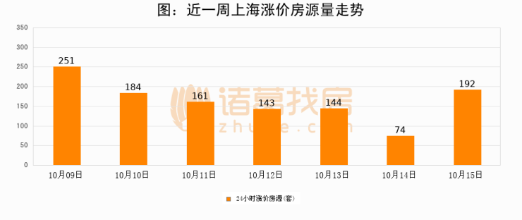 根据诸葛找房数据显示,上海24小时涨价房源量为192套,较10月14日增加118套,环比上涨159.5%。与此同时,涨价房源占比小幅扩大,业主信心有所提升。