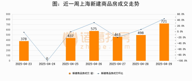 【上海成交日报】04月29日新房成交721套、二手房810套;涨价房源154套