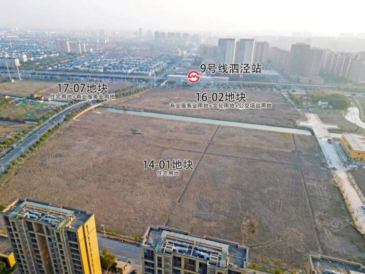 松江区泗泾镇SJS20005单元14-01、16-02、17-07号地块位于9号线泗泾站北侧,出让面积129624.71㎡。