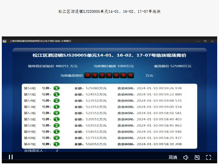 松江区泗泾镇SJS20005单元14-01、16-02、17-07号地块举行了现场交易会,上海土地市场官网对地块出让过程进行了直播。