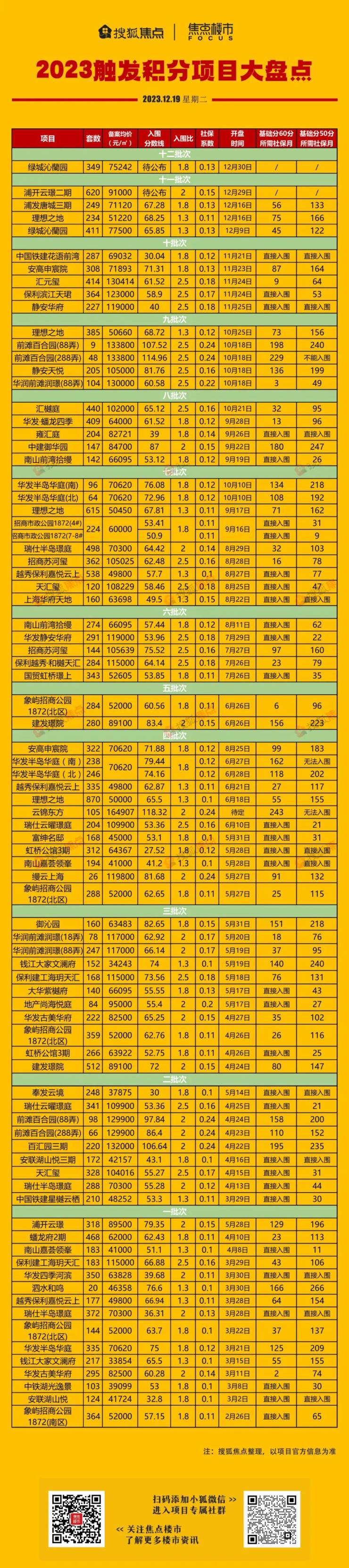 实行积分制近三年的时间中,市场涌现出大量的"高积分选手"、"社保巨子"。但今年以来,触发积分制的项目逐批次减少。十二批次除了已触发积分的绿城沁蘭园,预计仅有越秀静安悦可能触发积分,或将成为今年触发次数最少的一个批次。
