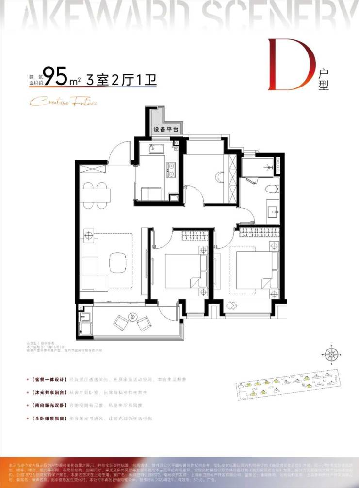 建筑面积约95㎡3室2厅1卫,满分小户型!