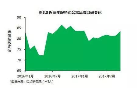 从近两年服务式公寓在舆情维度的整体表现来看,2017年服务式公寓较2016年有所进步,波动幅度较之前也大为降低。