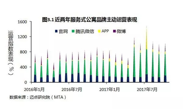 就服务式公寓主动运营表现情况来看,其运营优势主要集中于微信和微博端。从近两年在运营维度的具体表现来看,服务式公寓多个运营维度平稳增长。目前服务式公寓的预订渠道主要包括官网及OTA等方式,仅有较少的服务式公寓品牌具备APP预订功能,建议服务式公寓可增加品牌APP的开发,设置相应的市场推广活动,以增强用户的使用频率和品牌黏性。