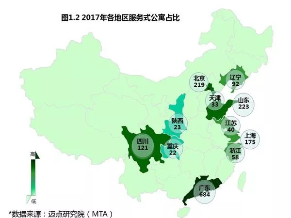 据迈点研究院(MTA)统计,目前我国服务式公寓多分布在沿海省份,内陆省份仅川渝地区分布较多,中西部省份中仍鲜有分布。