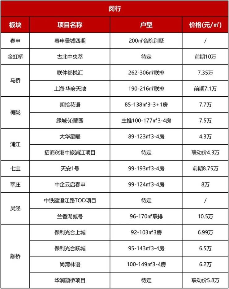 近两年,闵行诞生了不少顶流红盘,古美七宝地区的建发璟院、古美华府,吴泾的公园象屿招商公园1872南北两个地块 “8次开盘,8次触发,8次售罄”。2024年,供应较大的板块将集中在颛桥、梅陇、吴泾。去年年末土拍中,颛桥地块吸引了10家竞买人竞拍,可见其热度。