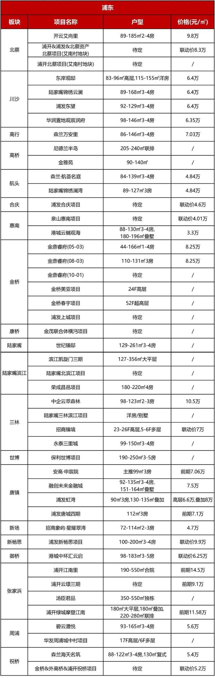浦东够大,供应量、成交量一直稳居前位。2024年,唐镇、北蔡、川沙、金桥、三林以及陆家嘴滨江都有多个新房入市。多点开花,可供选择较多。