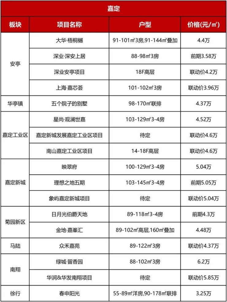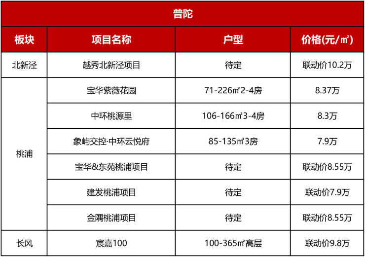 2024年桃浦新房供应量将继续加大,宝华&东苑、建发、金隅联动价7.9-8.55万/㎡不等;长风板块的长风宸嘉项目和北新泾板块的越秀新盘热度均很高。