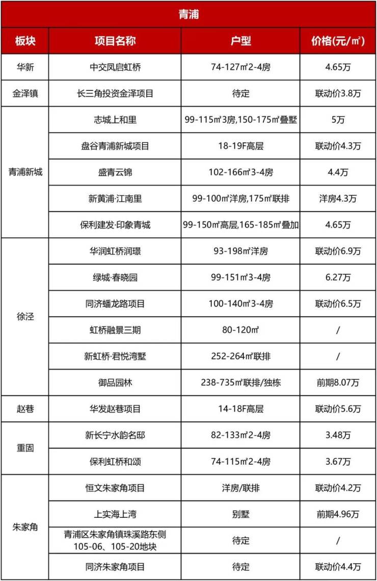 2023年大虹桥似乎在“走下神坛”,2024年,青浦徐泾将依旧是供应主力,此外青浦新城、朱家角也将有多个项目入市,整体供应量充足。