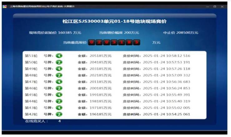 1月24日,上海土地市场举行第九批次土拍现场交易会。