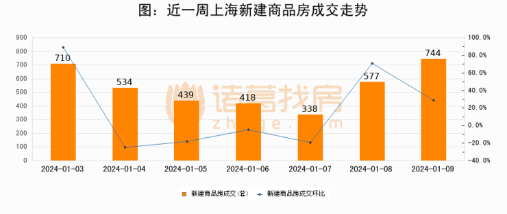 【上海成交日报】01月09日新房成交744套;涨价房源269套