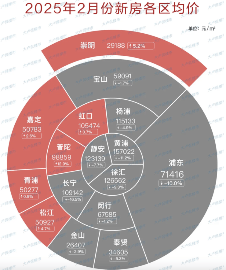 2月上海房价地图:成交量同比大幅增加 均价7万同比上涨6.2%