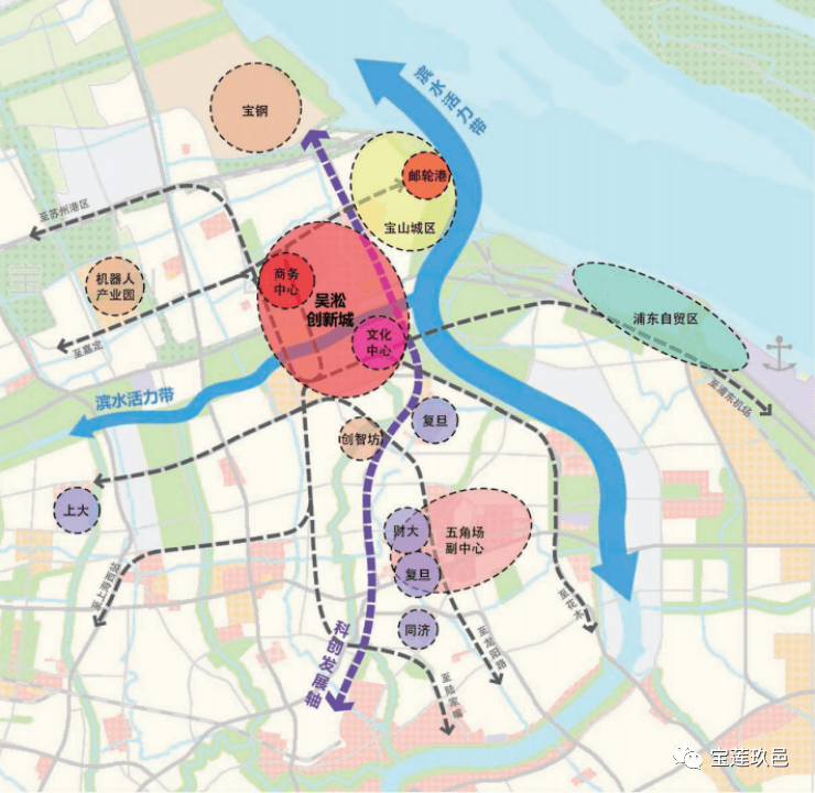 未来,吴淞创新城目标打造集产城融合、功能复合、中心聚合、空间围合、机制竞合为一体的,开放式、多功能、生态化和智慧型的新城区。
