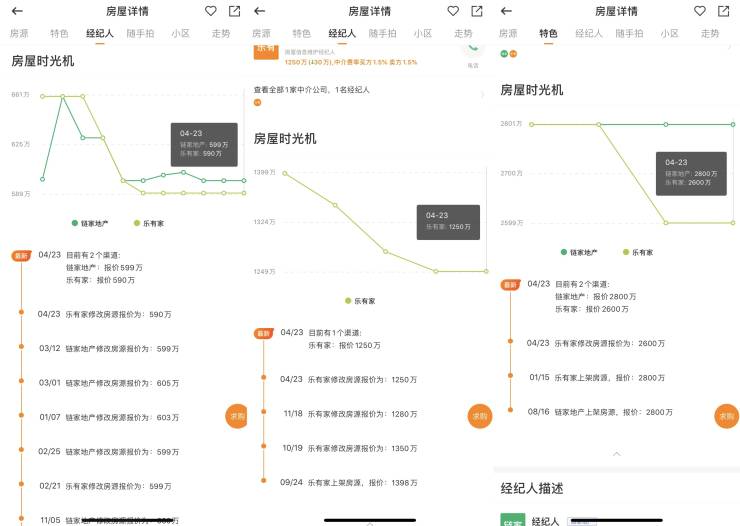 以一套位于罗湖区佳米基尚领公苑的房源为例,该套房源建筑面积88.17平方米,2022年7月6日上架时报价600万元,随后报价有所浮动,今年3月12日该房源挂牌价599万元,4月23日将报价修改为590万元,降价9万元。