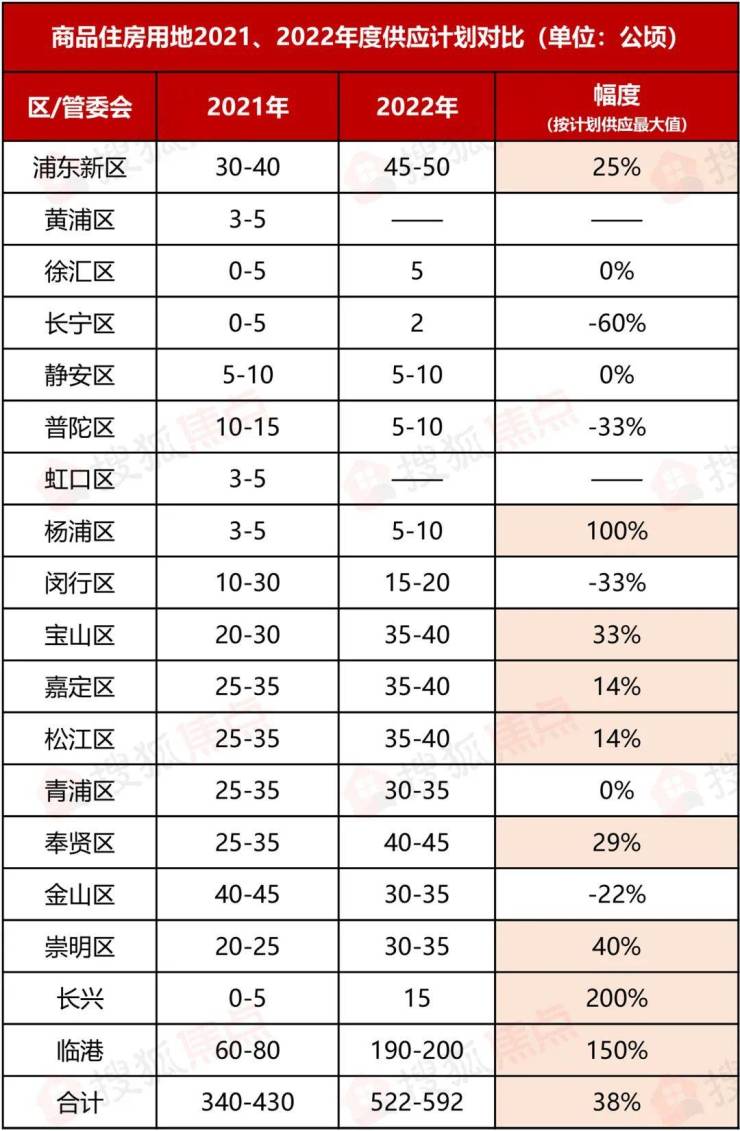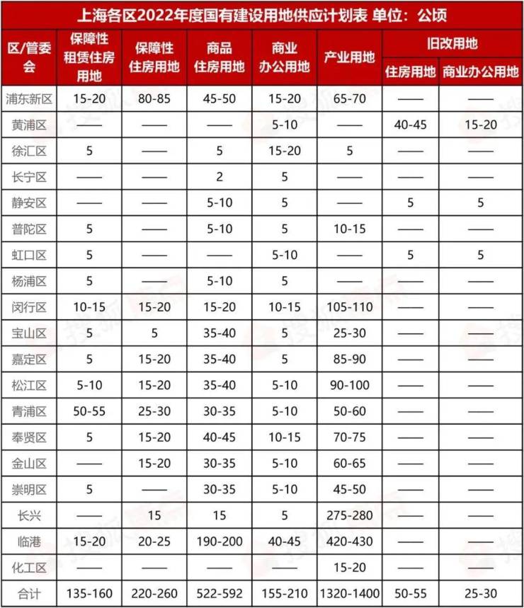 上海2022全年土地供应计划出炉!商品住房用地大增