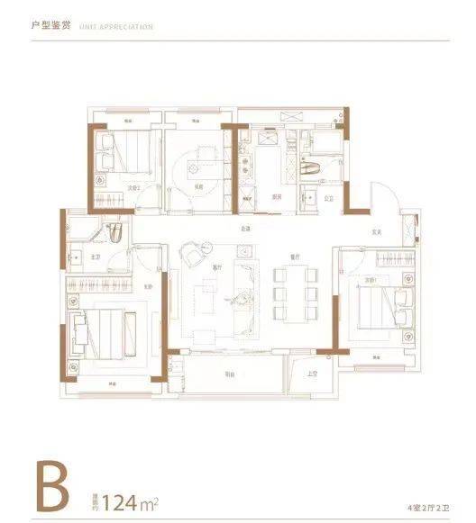 主力产品包括100㎡3房2厅2卫,124㎡、135㎡、145㎡4房2厅2卫,165㎡4房2厅3卫。