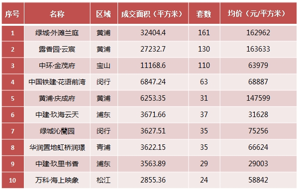 表:上海商品住宅成交TOP10(2024.3.18-3.24)