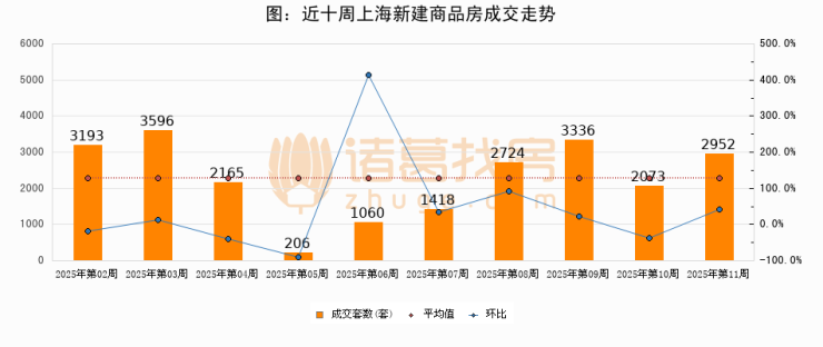 进入2025年第11周(03月10日-03月16日),上海新建商品房成交2952套,较上周增加879套,环比上涨42.4%
