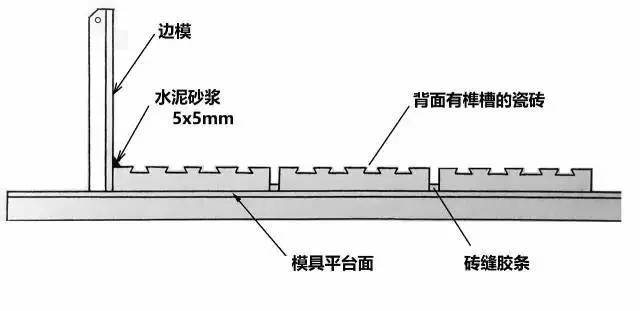另需注意的是,边模与瓷砖缝隙以及砖缝间可以事先涂抹少量砂浆,以避免混凝土浇筑时充填不密而影响缝隙美观。