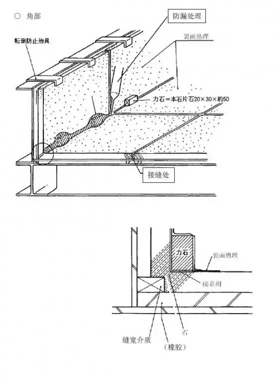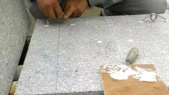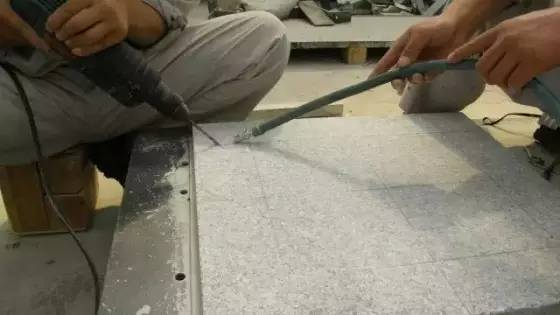 3、是预防没有锚固部分石材发生裂缝断裂时的掉落。(所用到的材料是树脂胶,硅砂以及防水密封胶)