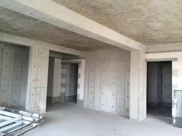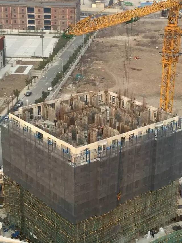万科翡翠滨江外墙PCF厚150mm,内浇200mm厚的剪力墙,内墙和楼板采用标准铝模现浇成型,现浇部分采用刚度大、重量轻、周转次数高、免抹灰的定型化铝合金模板,表面平整度高,实现了工业化建造“两提两减”目标,即提高质量、提高效率、减少人工、减少建筑垃圾。