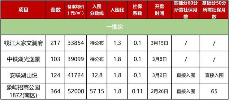 57.15、32.8,象屿招商公园1872、安联湖山悦入围分出炉