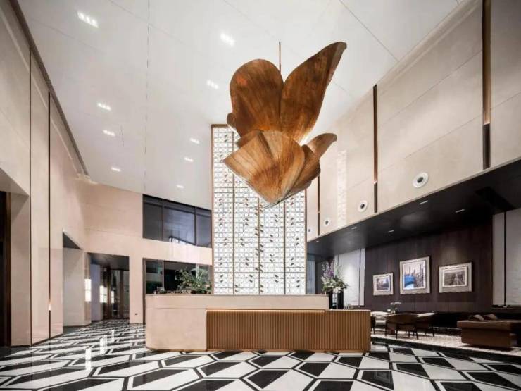 走进大厅,海派奢华感扑面而来。以白玉兰为主题的艺术装置和定制拼花,将上海的地域文化与现代审美巧妙融合。