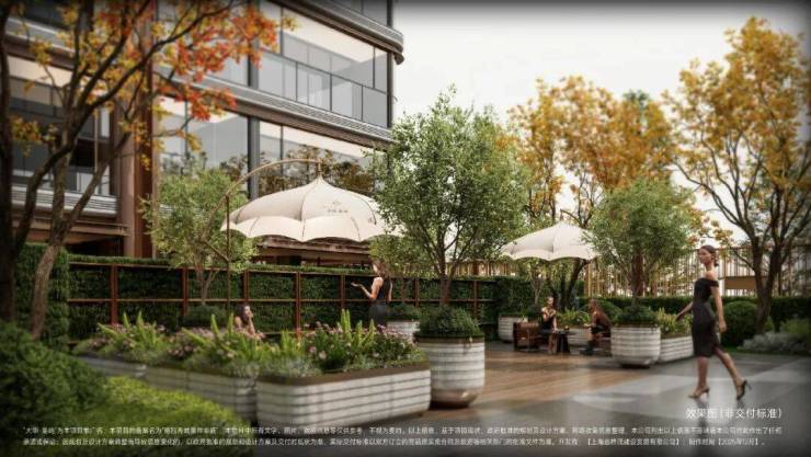 其次是外立面,项目溯源海派经典的ART DECO风骨,采用经典的三段式结构,整体布局讲究对称和秩序,横竖线条交织,体现出简约工整的现代美感。