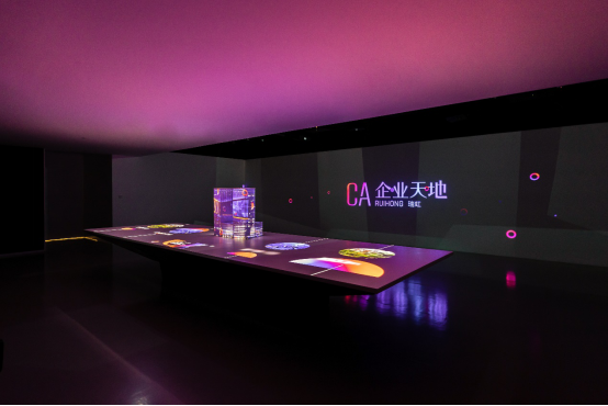 区别于以往传统样板间影音体验,瑞虹企业天地采用较新的黑科技——CAVE沉浸式系统,打造了一个办公虚拟样板间,将立体投影、升降沙盘、三维图形和音响等有机地结合。根据入口处客户提供的办公空间需求,呈现一个被立体投影画面包围的定制化高级虚拟仿真办公环境。身临其境地感受到瑞虹企业天地的众多核心亮点,无需想象,仿佛穿梭于自己理想中的定制化办公空间。
