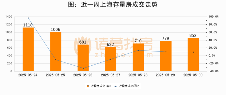 【上海成交日报】05月30日二手房852套;涨价房源157套