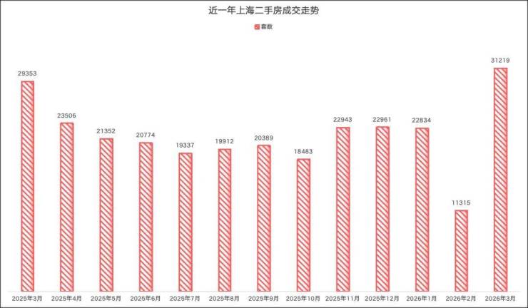 刚刚过去的3月份,上海二手房市场交出的一份成绩单足以让所有人侧目——二手房单月成交高达31215套(包含住宅、商办、车位)。这是自2021年以来,上海楼市时隔整整60个月,首次重新站上3万套的“活跃线”。