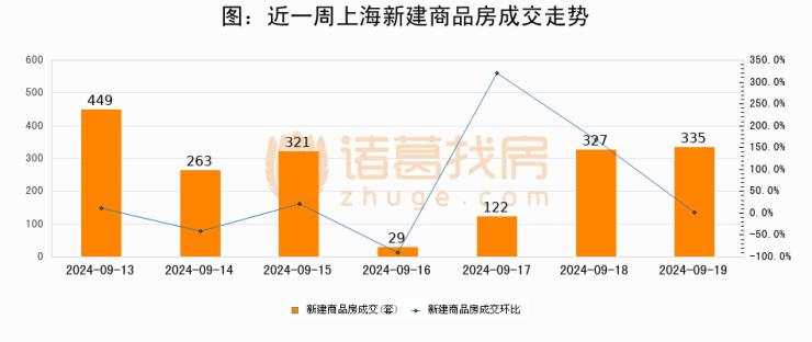 【上海成交日报】09月19日新房成交335套、二手房477套;涨价房源144套