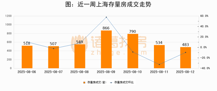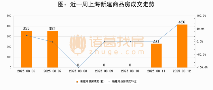 【上海成交日报】08月12日新房成交416套、二手房483套;涨价房源113套