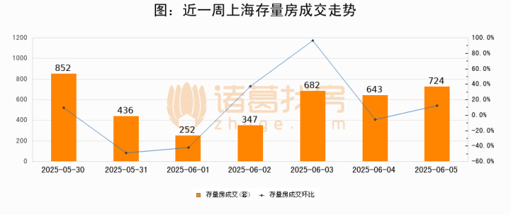 【上海成交日报】06月05日二手房724套;涨价房源213套