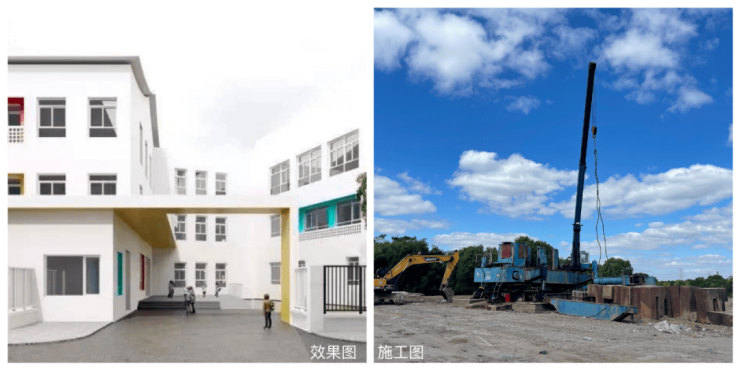 目前,项目北侧的沔青公园及横沔玖境北侧的幼儿园,均已按预期节点施工推进。