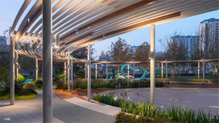 有针对热爱运动的社区居民的滨河运动场,有溜宠社交的阳光草坪、樱花树阵,还有针对城市精致白领在工作之余寻找悦己自我的秋千花园。