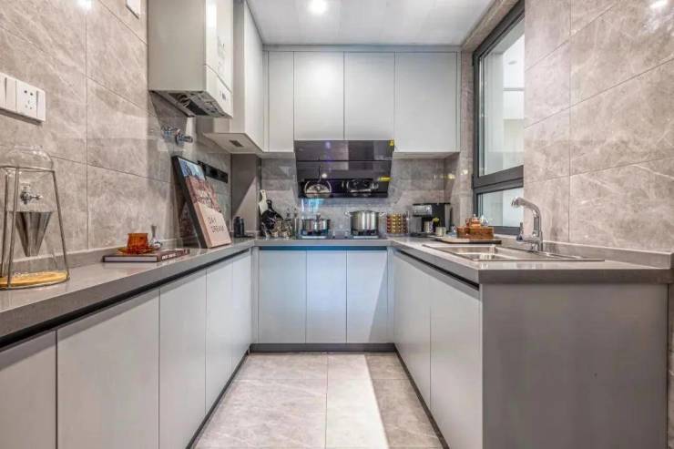 U型厨房根据科学的动线设计,将洗涤、操作、烹饪、储藏区域进行合理划分,针对厨房家务实际需求,在厨房所能利用之处均设计储物柜。滑动式插排,满足更多便利需求,让做饭变成优雅的享受。