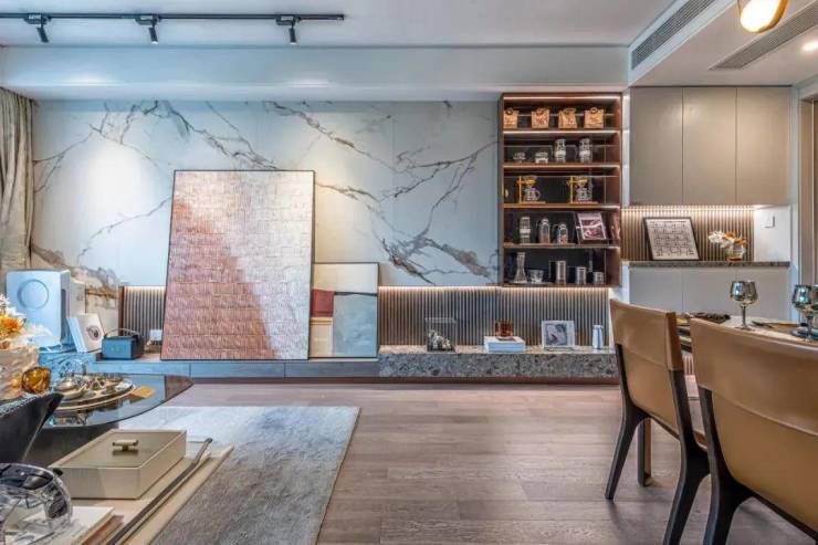 考虑到二胎家庭或三代同堂家庭的需求,餐客一体化方式,居家动线连通餐厅与客厅,扩展视域的同时,也让空间得到多重利用,实用性和趣味性兼具,通过室内活动空间的集中,一家人能够更好的互动交流。