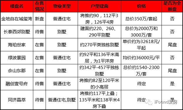 松江泗泾板块在售一手房共有7个项目,其中包括2个纯新盘,3个纯新盘,具体在售信息如下;