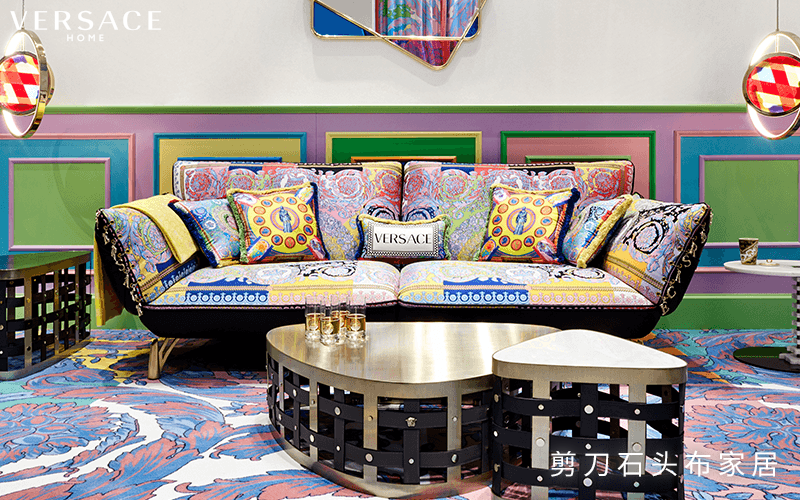 VERSACE HOME Rhapsody系列作品采用Technicolor Baroque印花设计,丰富斑斓的色调创造愉悦的家居氛围。简约的造型展现高雅的生活态度,家具的底座均以呈黄金色调的梅杜莎头像支撑,皮料边沿的字母设计给家居注入了更多时尚的元素。采用以金属铸造的维尔图斯女神 (Virtus) 头像或以品牌擅长的安全别针点缀的灵感来自于纽约站的时装秀。