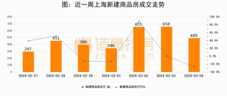 【上海成交日报】03月04日新房成交489套;涨价房源142套