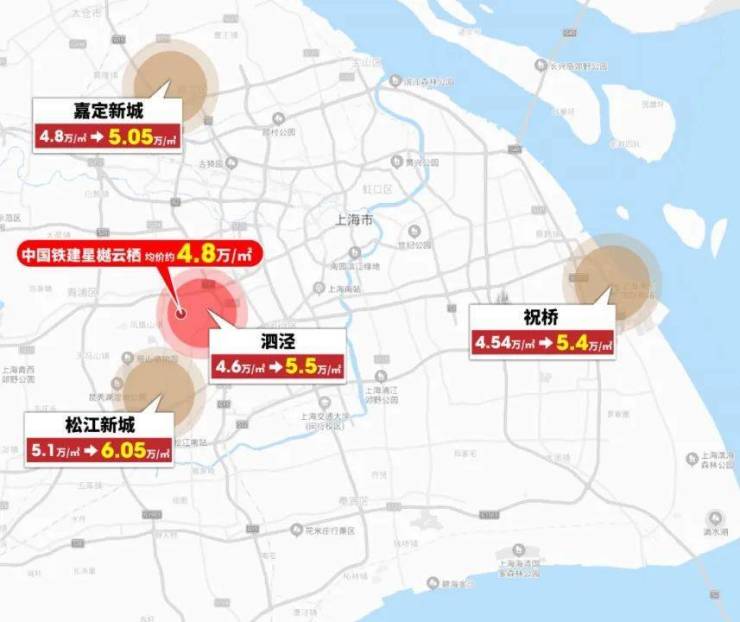 有轨交且配套丰富的泗泾,新房均价直接从4.8万/㎡越级踏入了5.5万/㎡的层次。