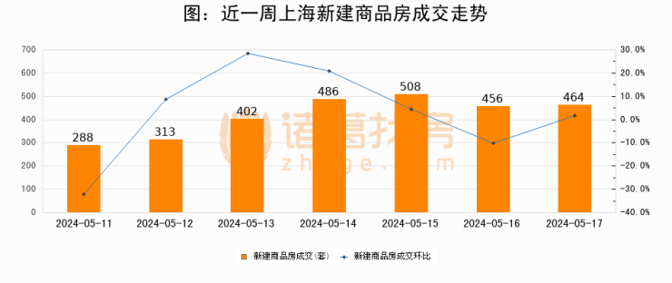 【上海成交日报】05月17日新房成交464套;涨价房源190套
