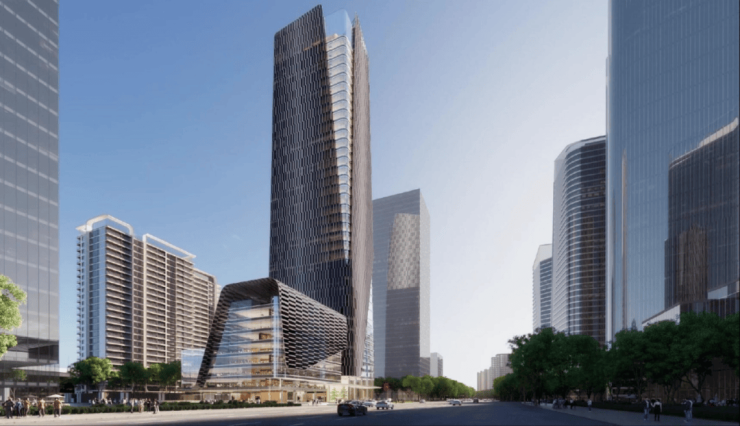 而能建城发项目,说不定是一个低分上车徐滨的机会,因为项目仅两幢高层,南侧朝向被图中的195米地标办公楼遮挡,住宅视线、采光均会遭到南侧超高层办公楼的遮挡。而这,也是项目可能可以低分捡漏的原因。